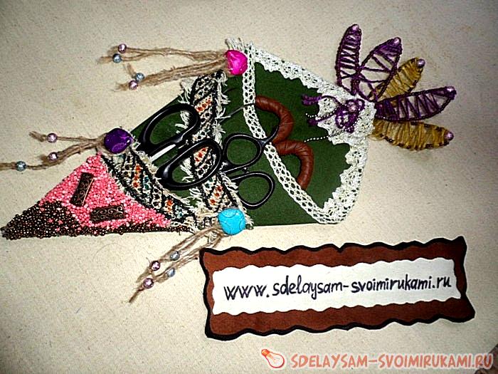 Это всё рождалось спонтанно, и вот у меня получился такой интересный органайзер для ножниц, который потом мне напомнил ирокез, но самое главное он из брезента, который, как известно, и в огне не горит, и в воде не тонет, а значит и прослужит долго. А по поводу брезентовой крепкой ткани у меня ещё идеи возникли, и возможно вы тоже можете придумать с ней что-нибудь интересненькое.