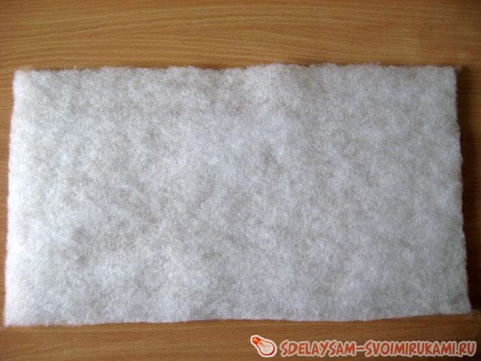 Теперь обклеиваем заготовку полосами двухстороннего скотча, наклеиваем синтепон.