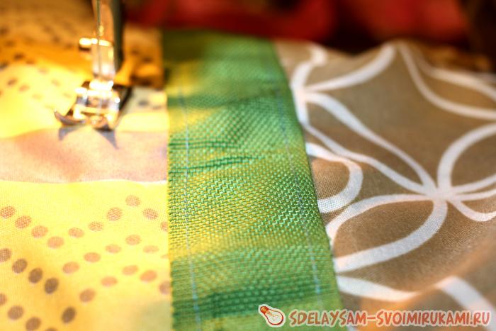 9. Прострочите фрагменты снизу и по бокам, оставив отверстие для наполнителя.