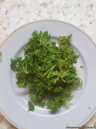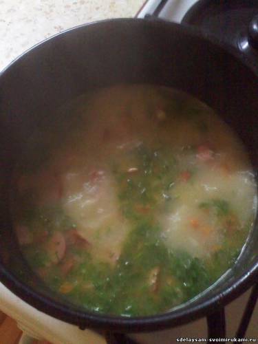 Добавляем соль по вкусу, зелень. Выключаем огонь.