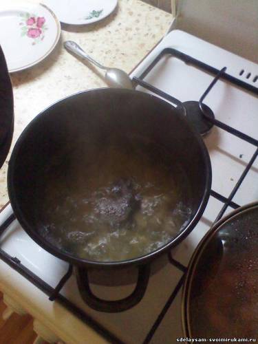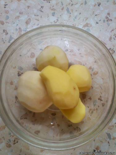 Картофель я взял 4 средних клубня, как и с сыром: хотите погуще - берите побольше.