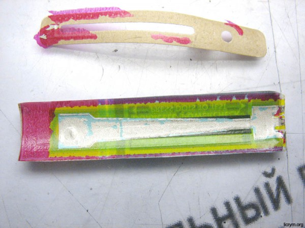 Через эту фольгу начинает течь электрический ток, который вызывает нагрев полоски фольги по всей поверхности. Сверху наклеена полоска с делениями различного цвета. Это ячейки с термической краской, которая меняет цвет в зависимости от температуры. В каждой ячейки своя краска, реагирующая на разный участок температуры. Красный участок самый чувствительный, а последний зеленый самый не чувствительный и требует максимальной температуры.