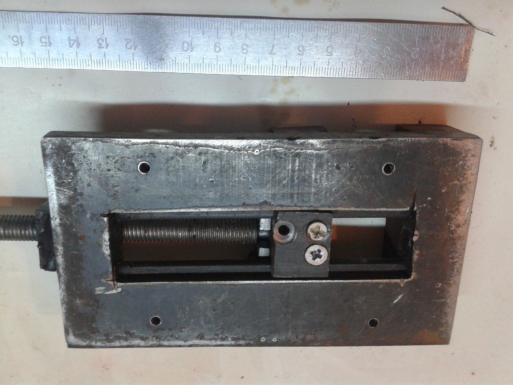 Эта самодельная прямоугольная гайка будет удерживать эксцентрик на подвижной губке, и позволять им двигаться по перемычке швеллера (направляющей) в ту или другую сторону.