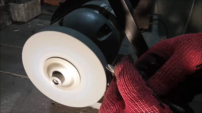 Вполне возможно, что с первого раза операция может не получиться. Ничего страшного. Терпение и аккуратность, это даст положительный результат. Пару слов о технике безопасности. Точило должно иметь защитный кожух. Работать необходимо в перчатках, причем прочных, например спилковых. Лицо и глаза следует ОБЯЗАТЕЛЬНО защитить очками, а лучше маской. Успешной Вам работы!