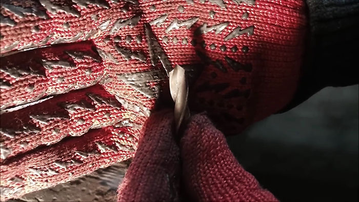 Берем дрель, вставляем заточенный инструмент в патрон. Пробуем сверлить стальную пластину толщиной 8 мм.