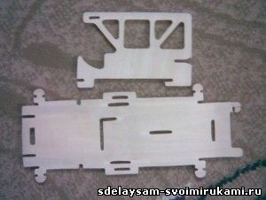 ![]() | Любите работать с деревом? Тогда это специально для Вас! Сегодня я покажу Вам, как можно собрать из фанеры модель старого автомобиля. Итак, начнем. Сперва Вам нужно выпилить лобзиком следующие заготовки: Это основание всего автомобиля. Левая часть – передняя часть. |
