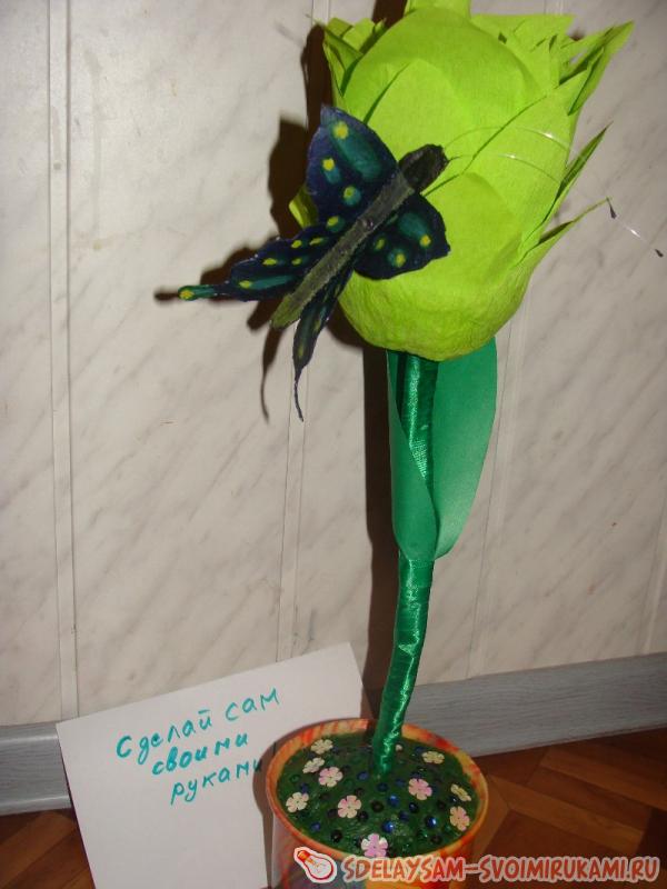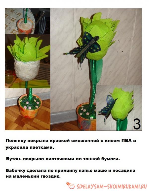 Своеобразный искусственный цветок с названием "Тюльпан лето" прислал один из пользователей сайта. В принципе ничего в нем сложного нет, а получается очень красиво. Так что повторить данную поделку под силу любому. Единственное, что можно добавить, так это то что с пеной лучше работать в проветриваемом помещении или на улице - вещь довольно токсичная.
