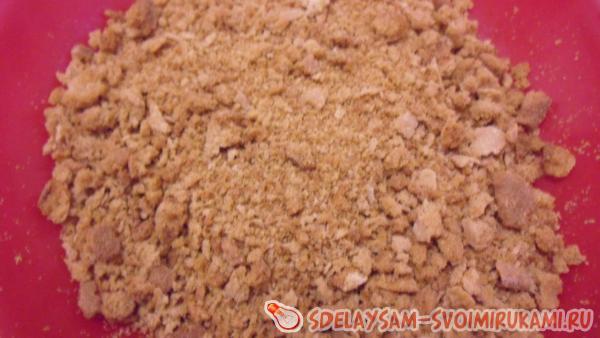 Шаг 11. Превращаем в крошку девятый корж (просто разминаем пальцами).