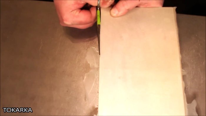 Затем шпателем или пластиковой картой наносим полученное связующее тонким слоем на всю поверхность листов обыкновенной писчей бумаги формата А4 и плотностью 80 г/кв.м, накладываемой одну на другую.