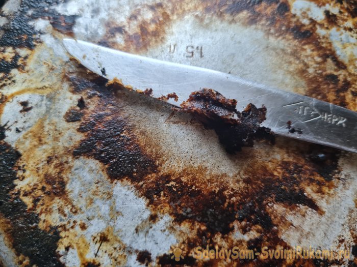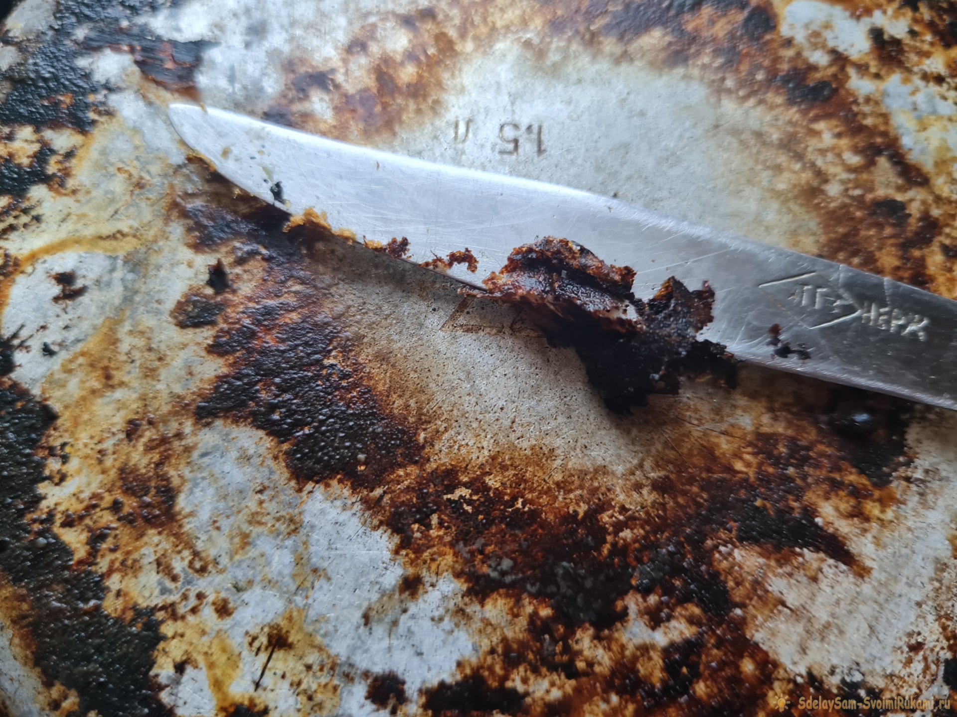 С утречка или можно попозже при помощи неострого ножа или скребка протираю загрязнения.
