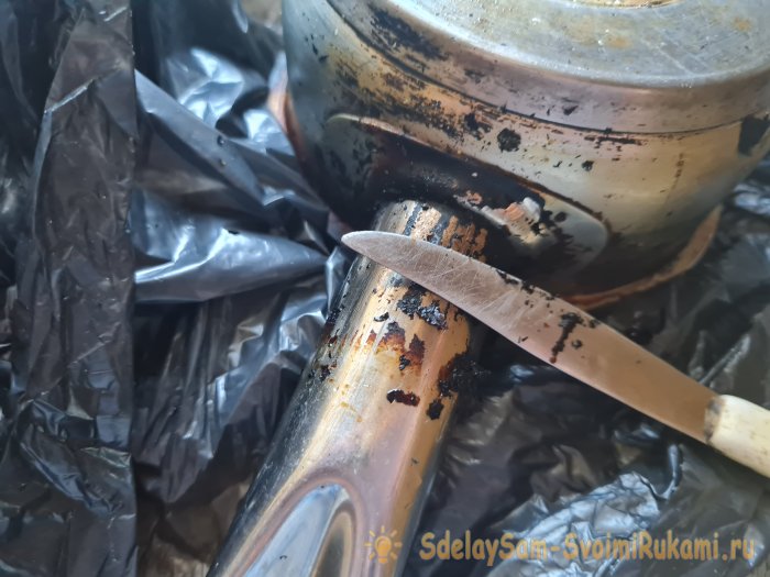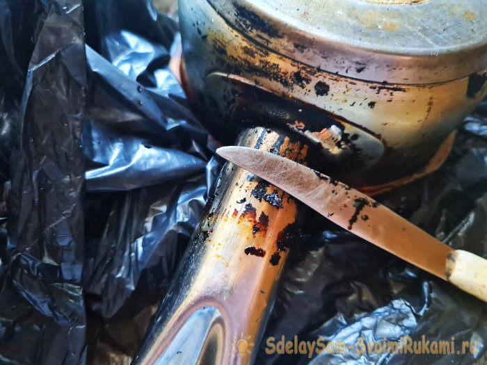Сразу замечу, что количество аммиака увеличиваю, если требуется больший объем очистки. Например, не одну или две посудины отправляю в плотный кулек (кстати, у меня тот, что предназначен для мусора), а три, четыре и т.д.