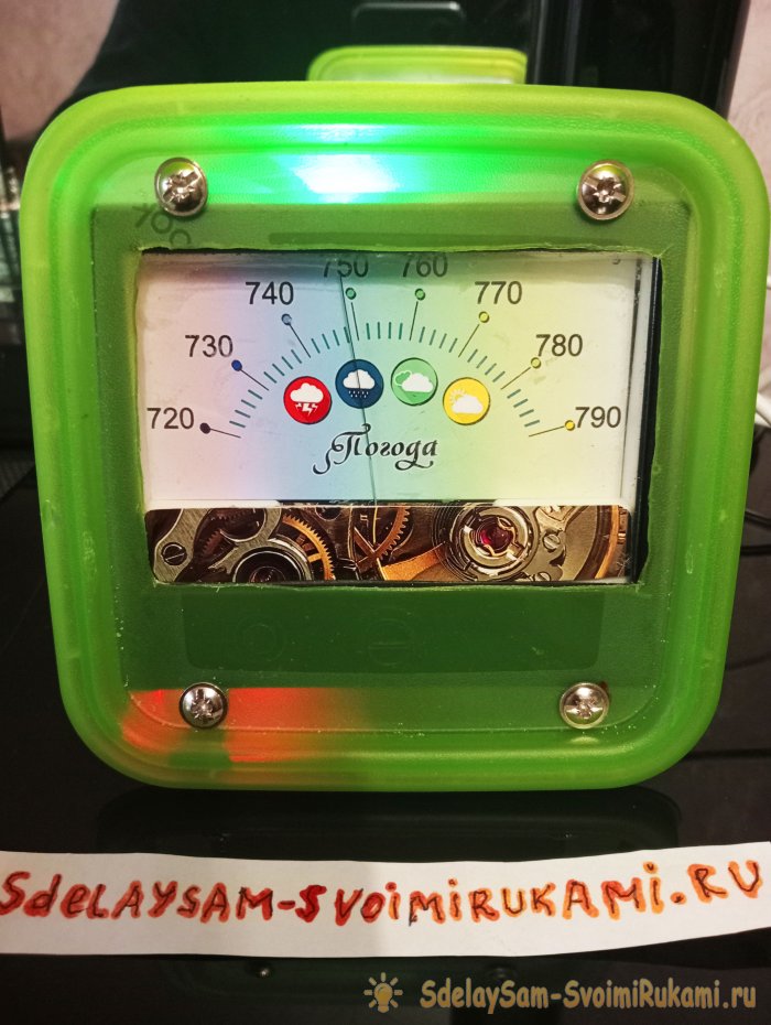 После загрузки нужно будет выставить максимум барометра переменным резистором, так чтобы стрелка указывала на деление «790». Выставляем и фиксируем лаком движок резистора чтобы не сбился.