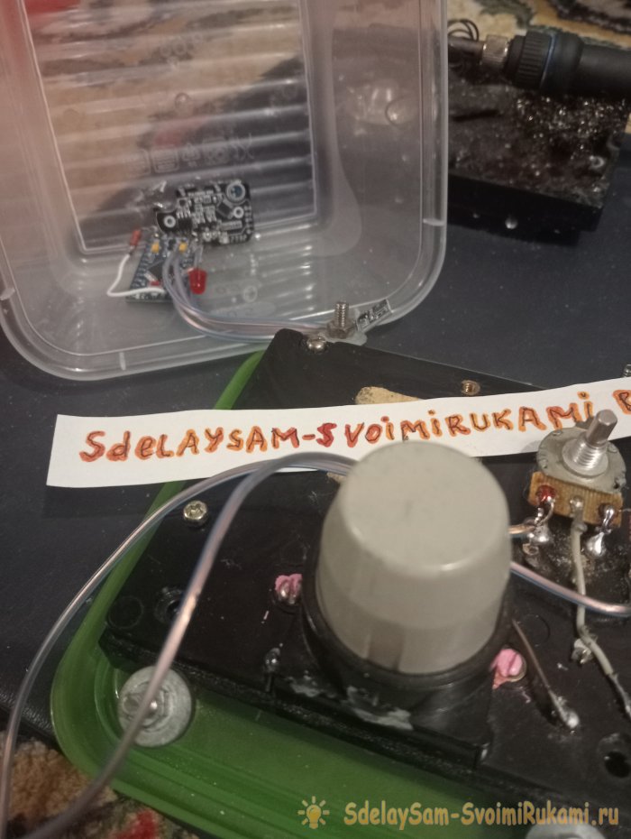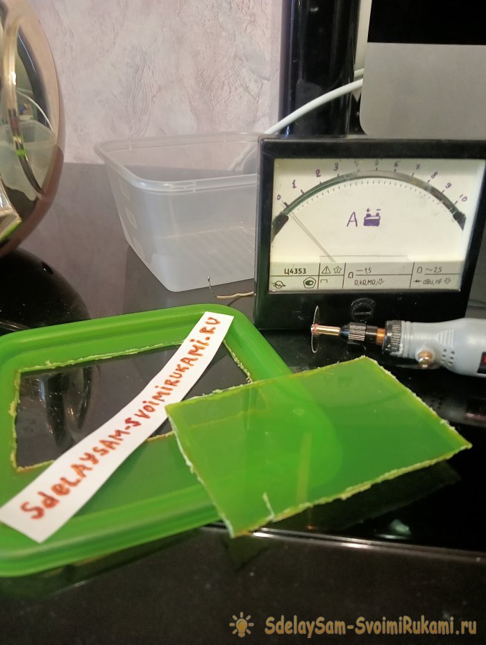 После просушки собираем измерительную головку, размечаем посадочное место и прорезаем крышку лотка. Это удобно делать дремелем.