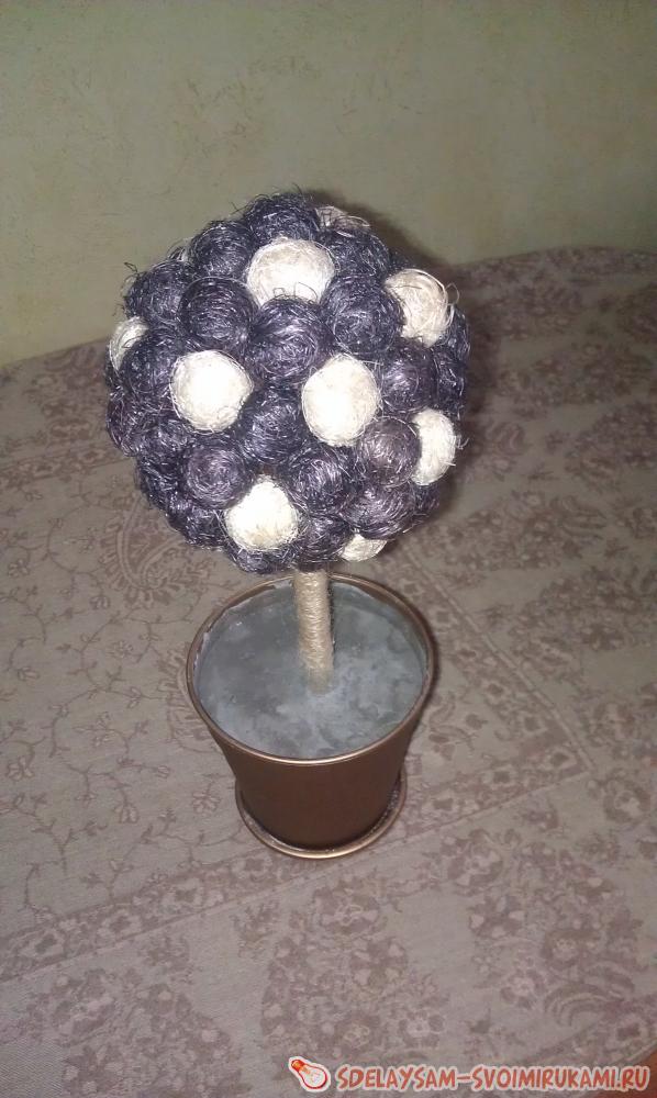 Приклеиваем все шарики из сизали. После этого основная часть нашего деревца полностью готова.