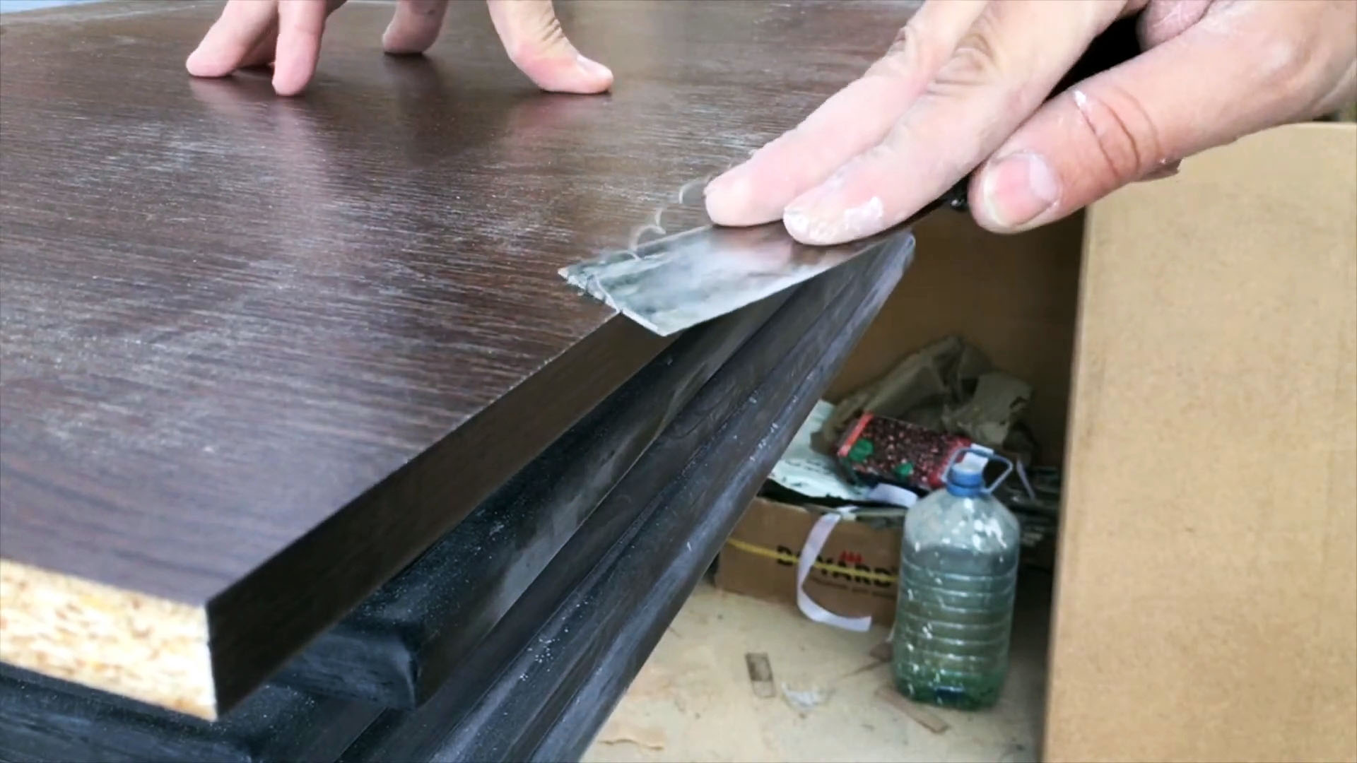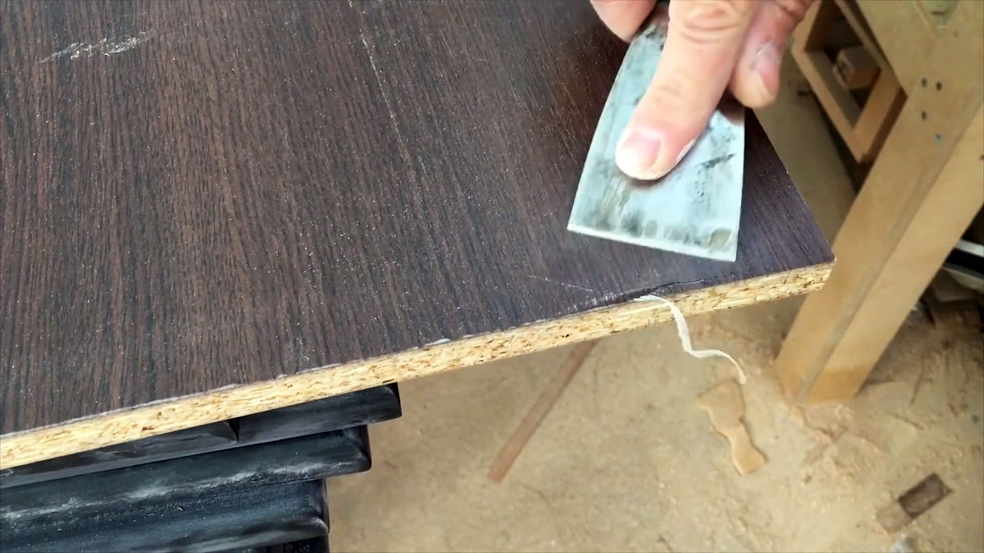 Хочу начать с того, что не у каждого начинающего столяра есть кромкооблицовочный станок. У меня его тоже нет, но на одной из реставраций заказчик попросил заменить несколько деталей под мойкой. Они развалились из-за влаги.