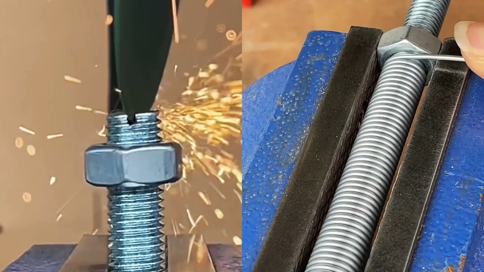 Первым делом необходимо подобрать шпильку по диаметру сгибаемой трубки. На шпильку наворачивается гайка. Затем, при помощи болгарки нужно сделать пропил на торце шпильки.