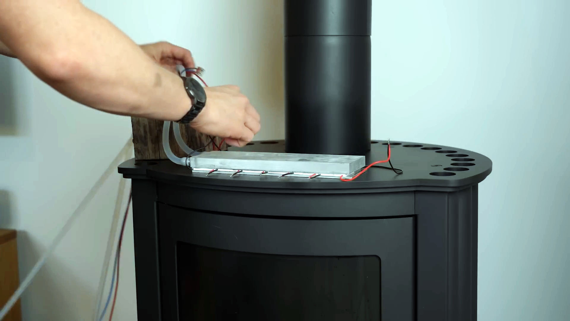 Разница температур между горячей и холодной сторонами составляла около 20 °C. При разнице в 100 °C можно получить 4,8 В и 669 мА. Мой камин нагревается выше 100 °C, а для охлаждения я использую дождевую воду с температурой 9 °C.