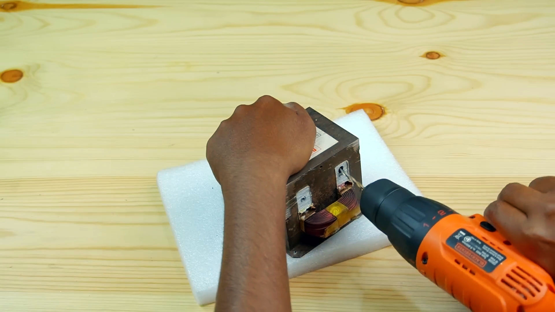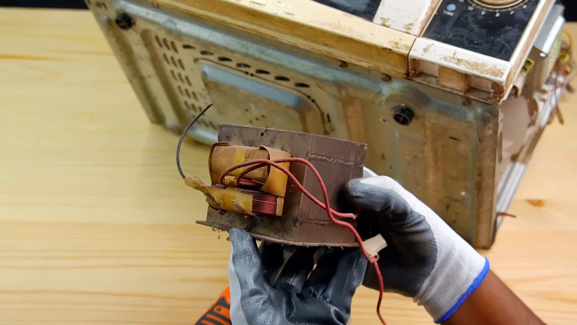 Первым делом необходимо вытащить трансформатор из микроволновой печи.