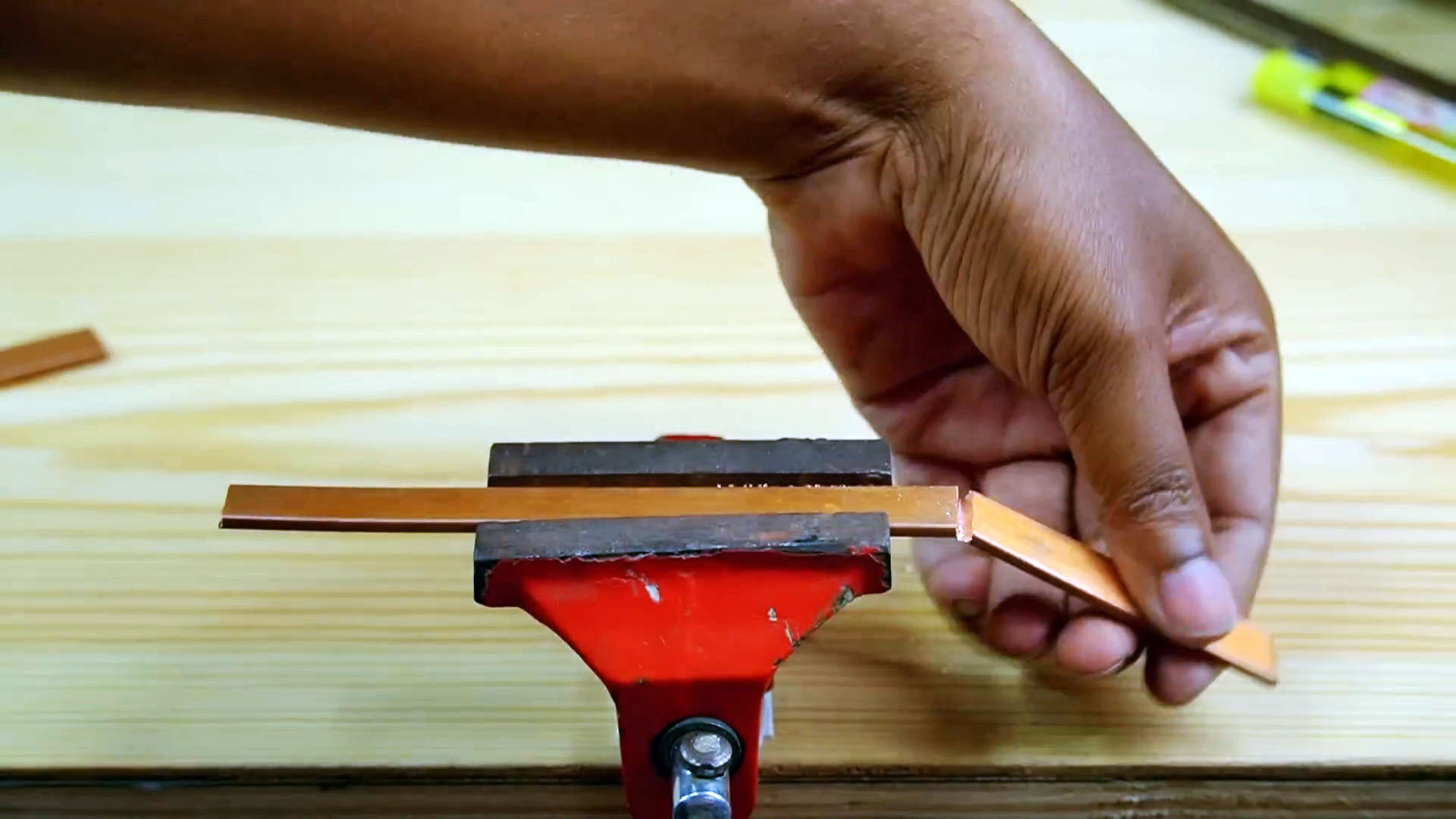 От медной шины отпиливаем 4 отреза: 2 по 7 см и 2 по 1 см.