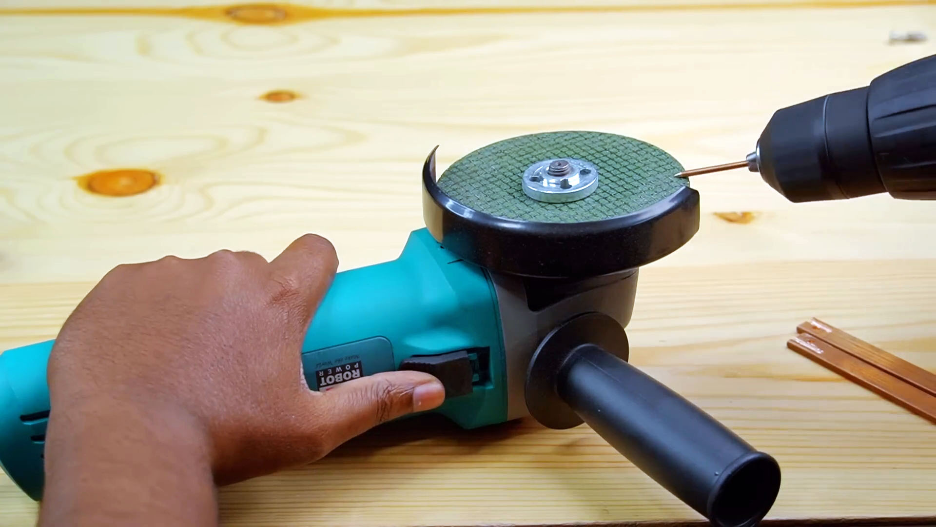 Затачиваем с одной стороны при помощи шуруповерта и диска болгарки.