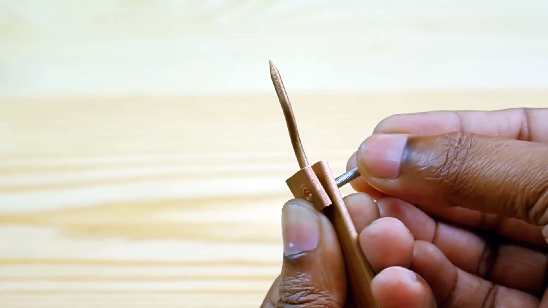 В тиках зажимаем отрезок 7 см и 1 см вместе и просверливаем посадочное место для тонкого электрода.