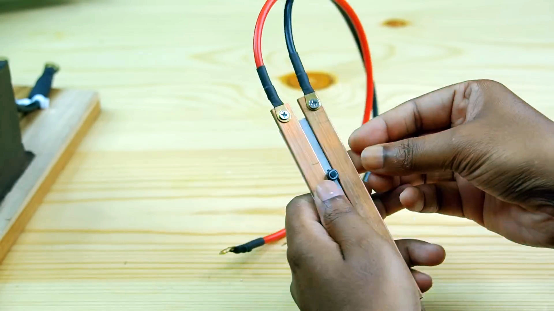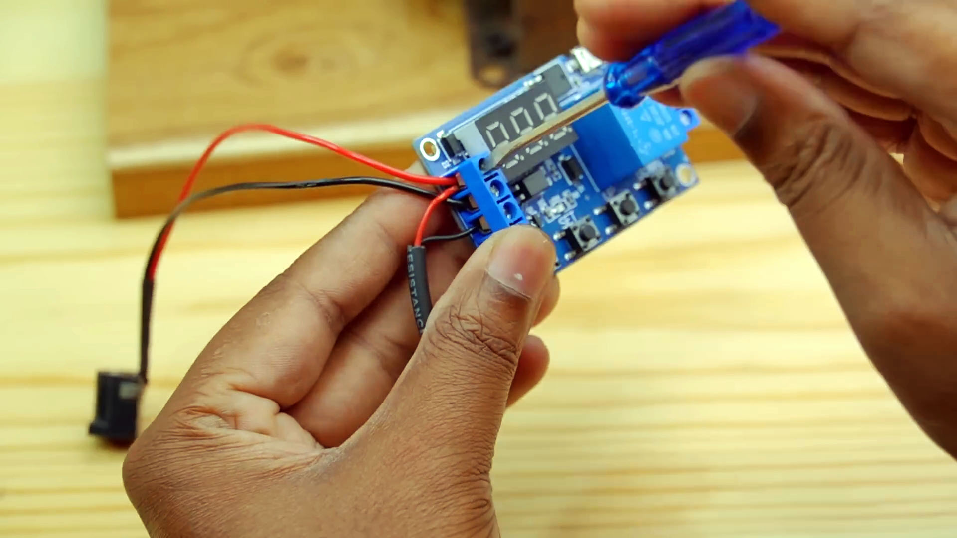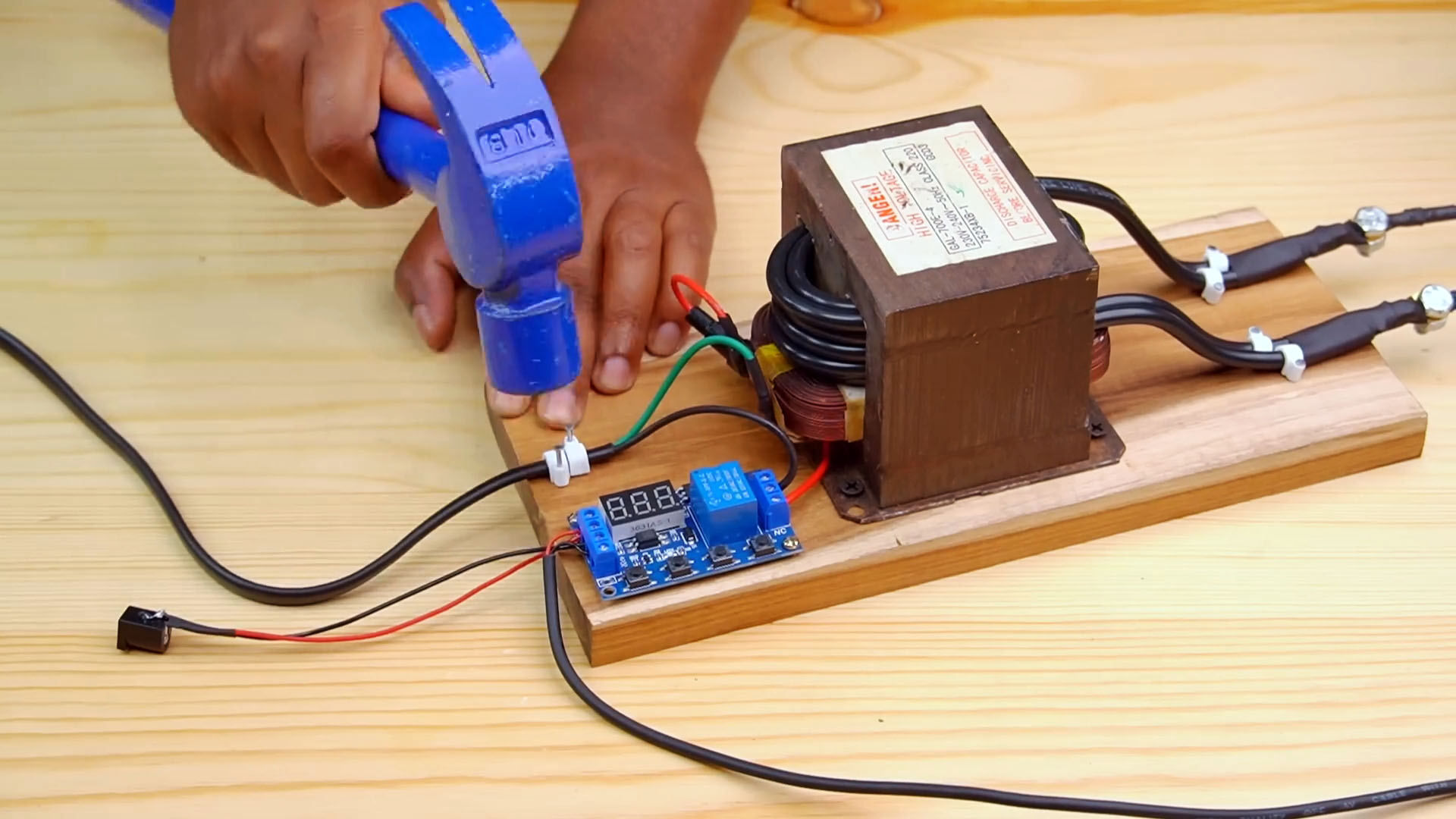 Миксируем модуль и провода на деревянном основании.