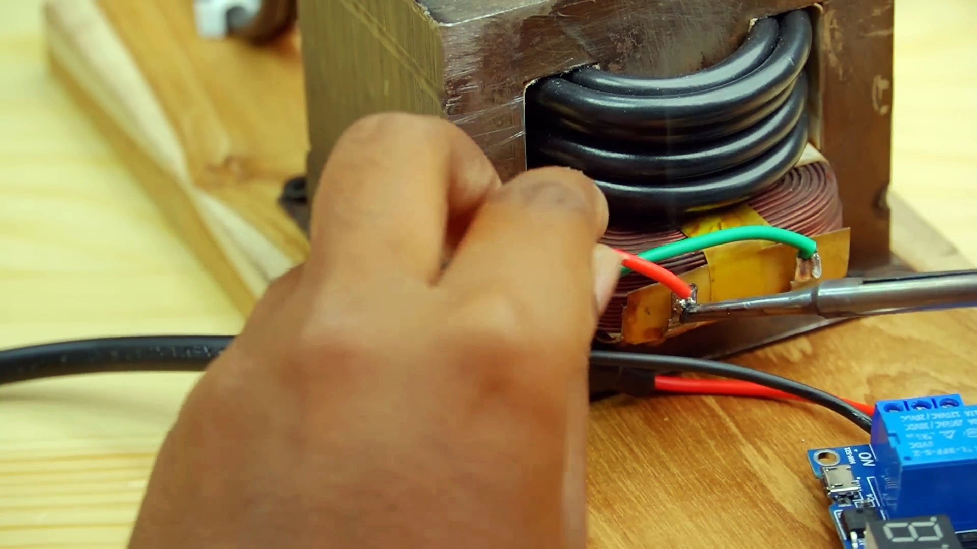 Припаиваем к трансформатору вывода.
