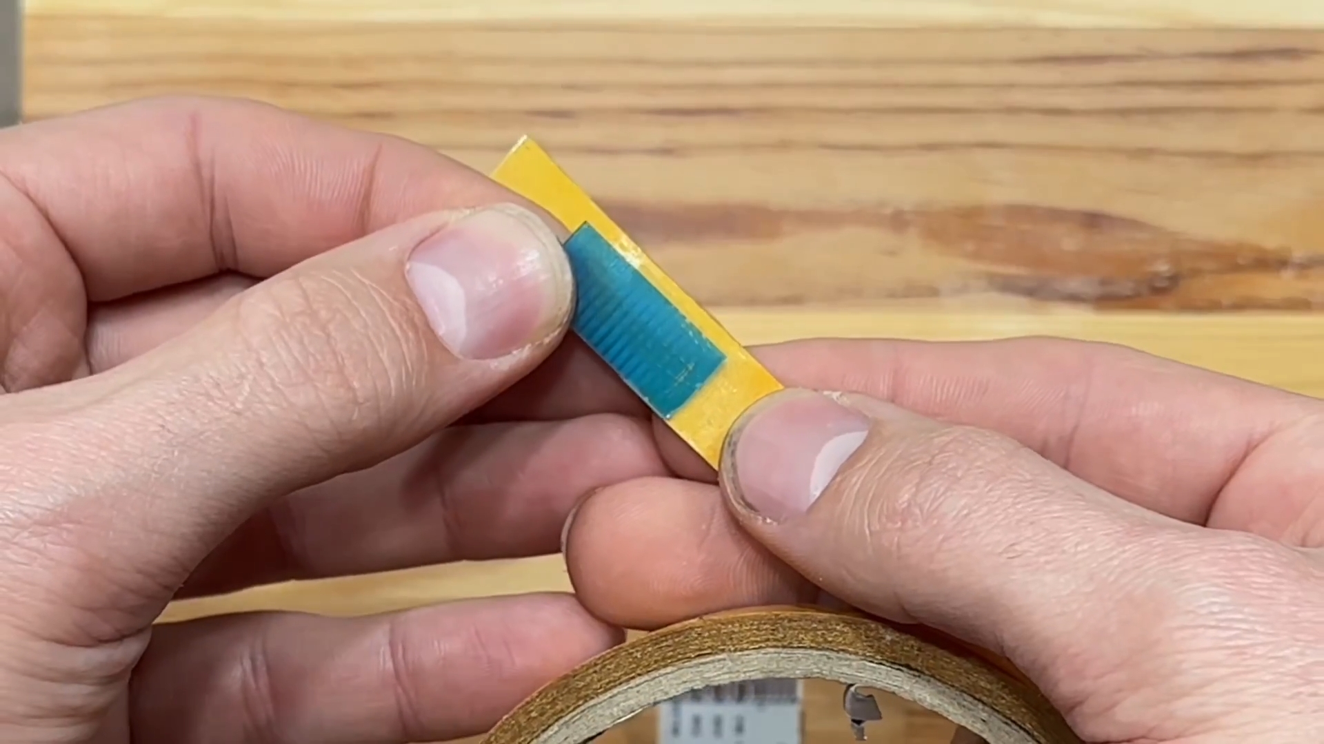 Синюю подложку, оставшуюся ранее, наклеиваем на двусторонний скотч.