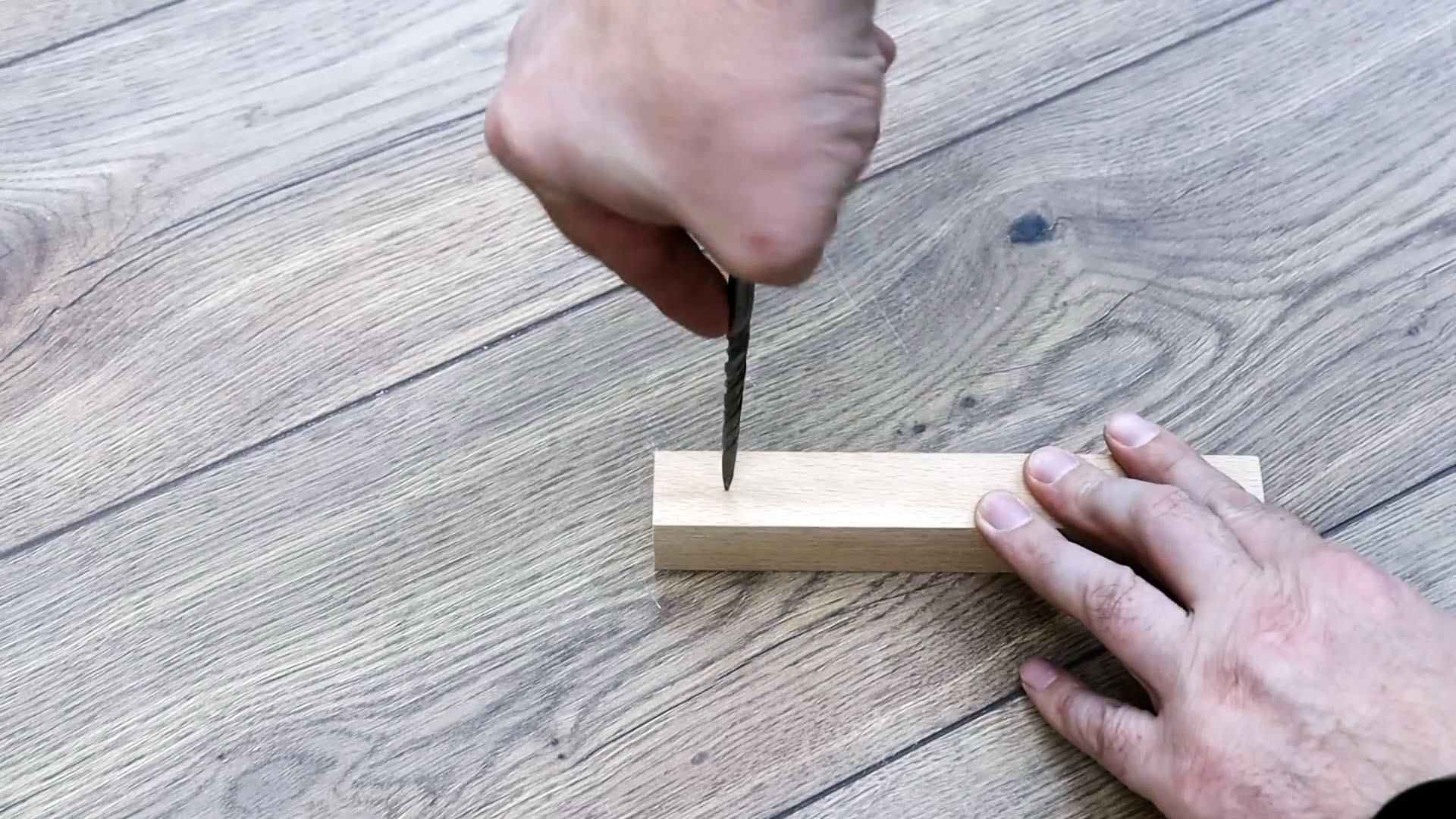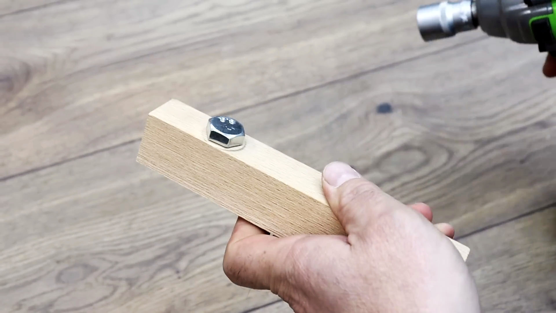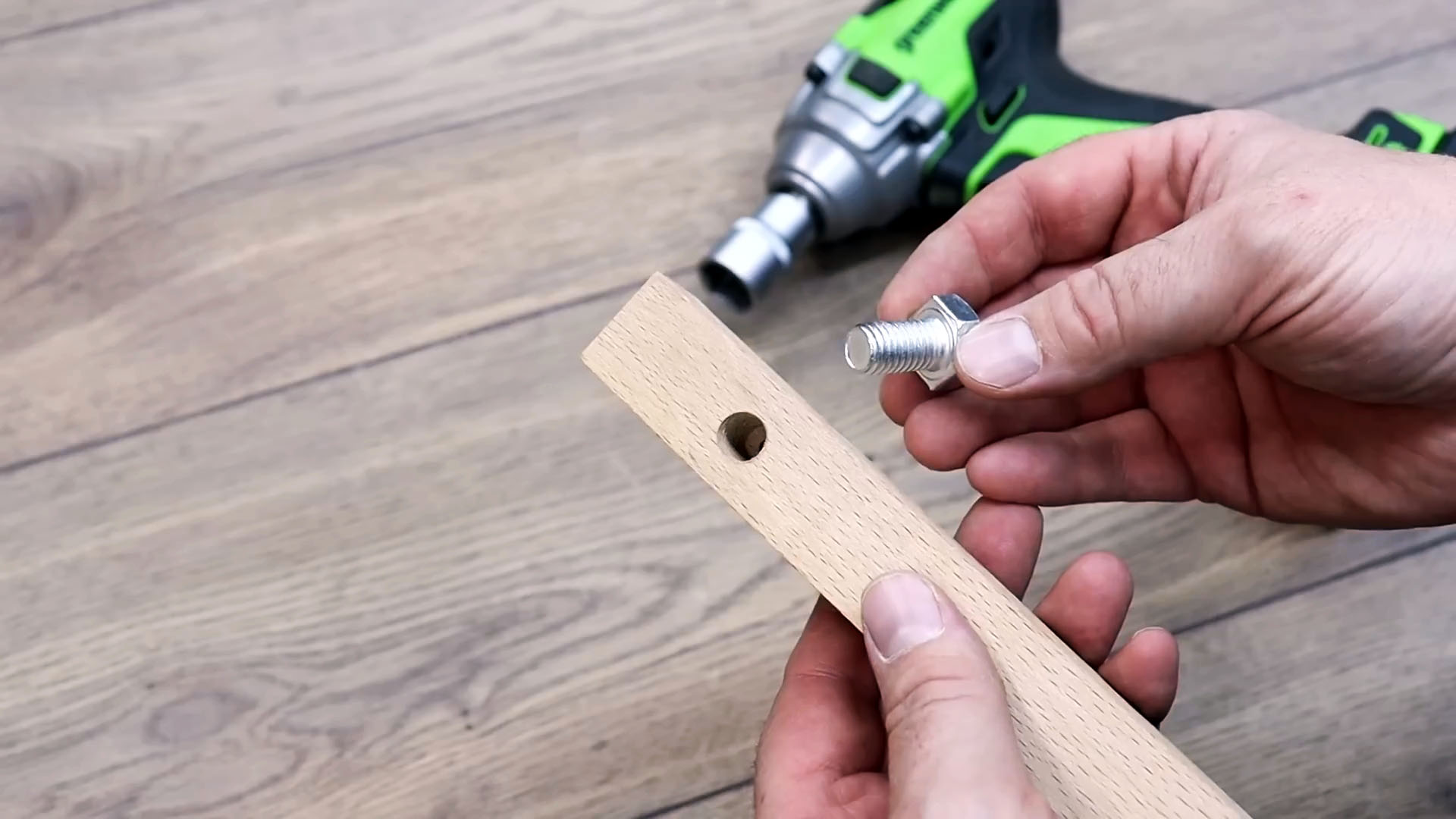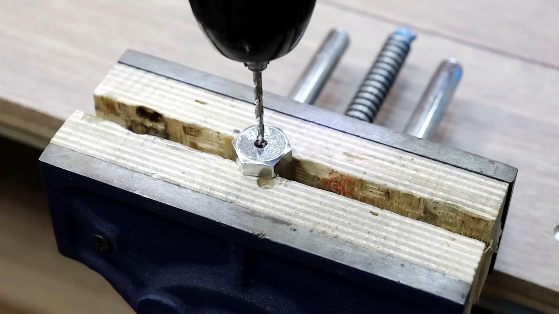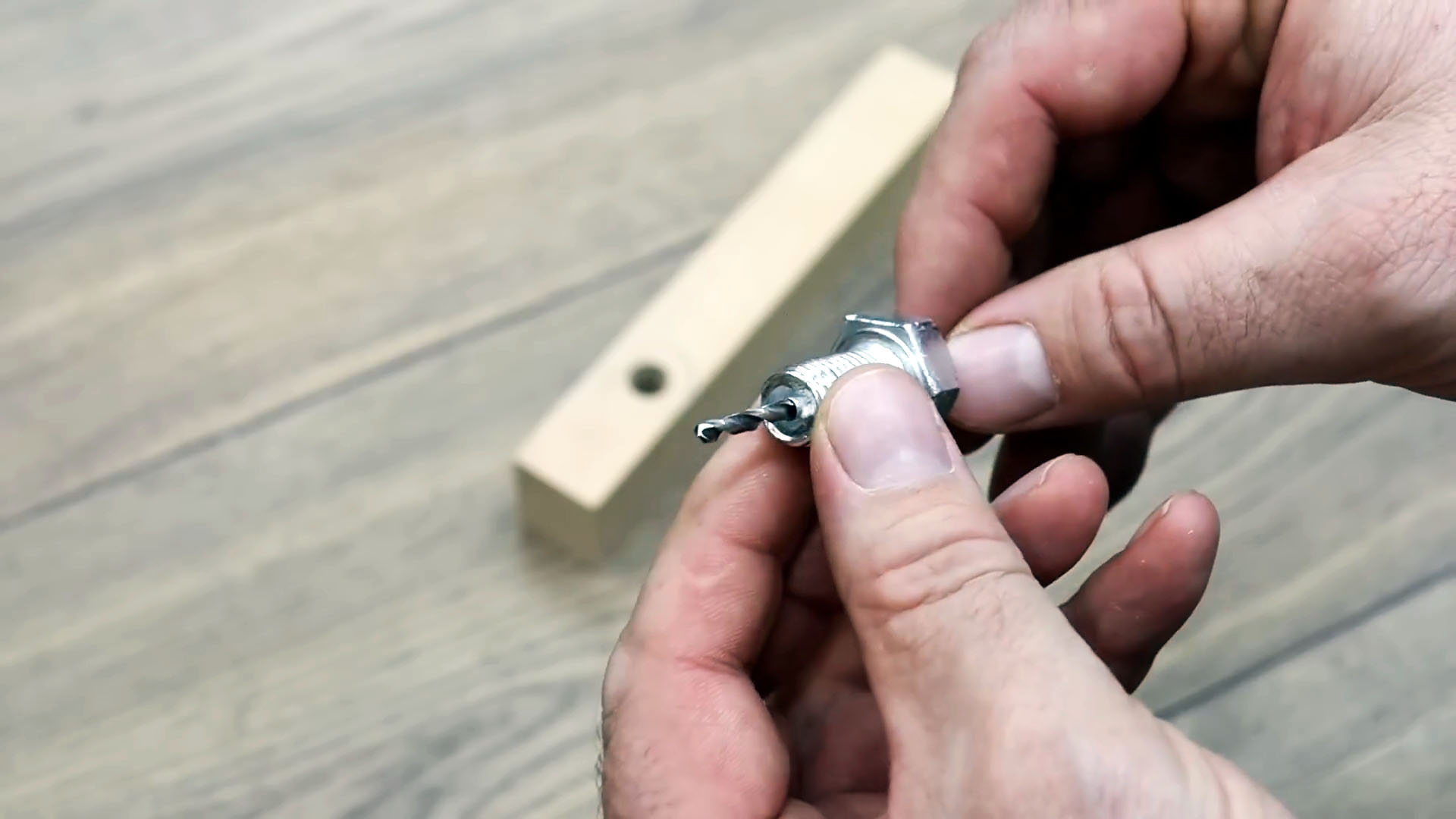 Заворачиваем болт для сверления в этот брусок.