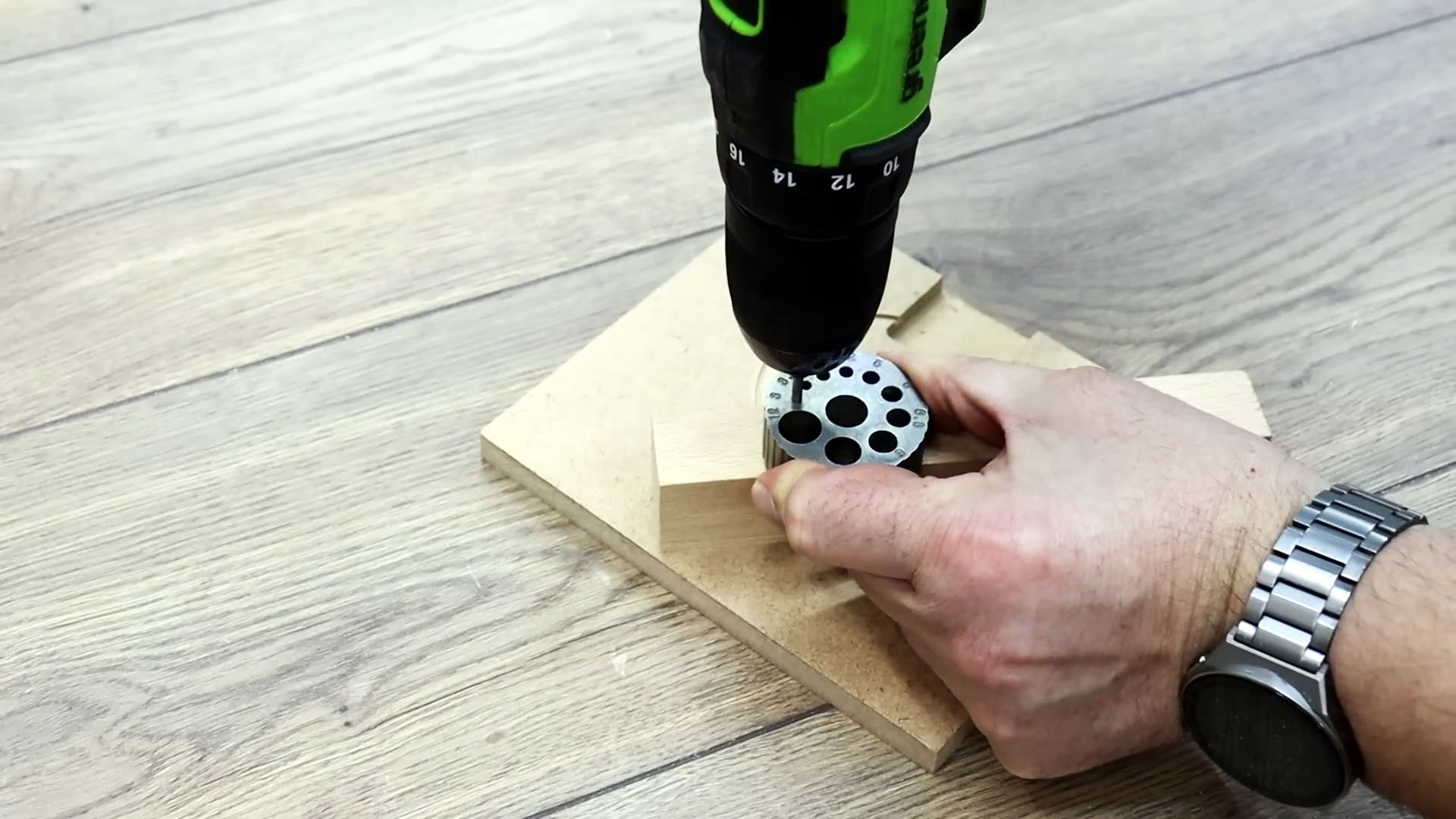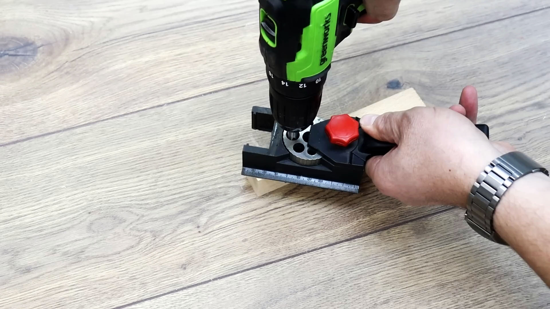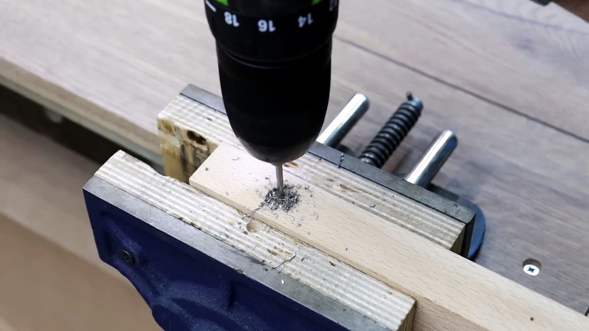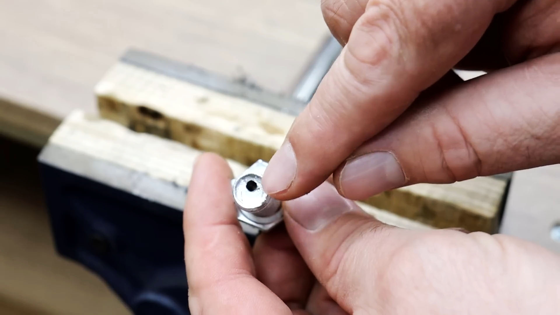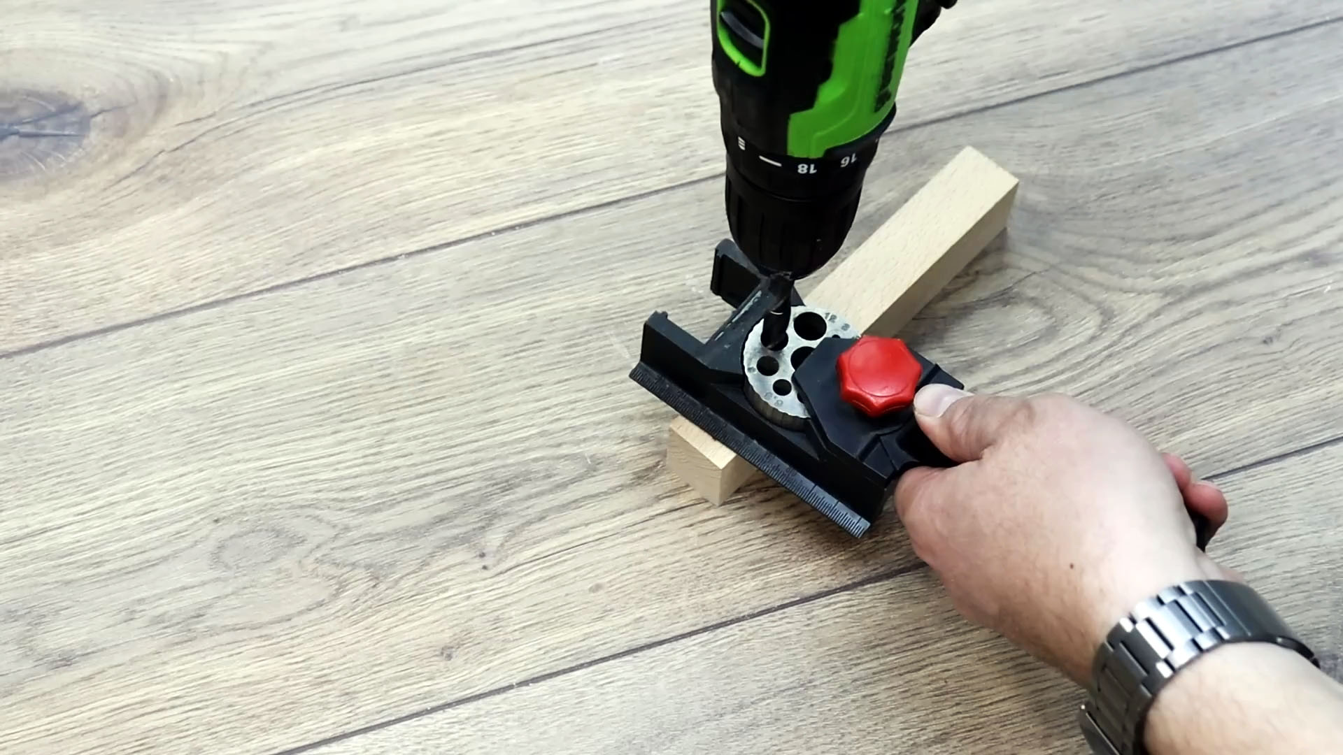 Заворачиваем болт для сверления в этот брусок.