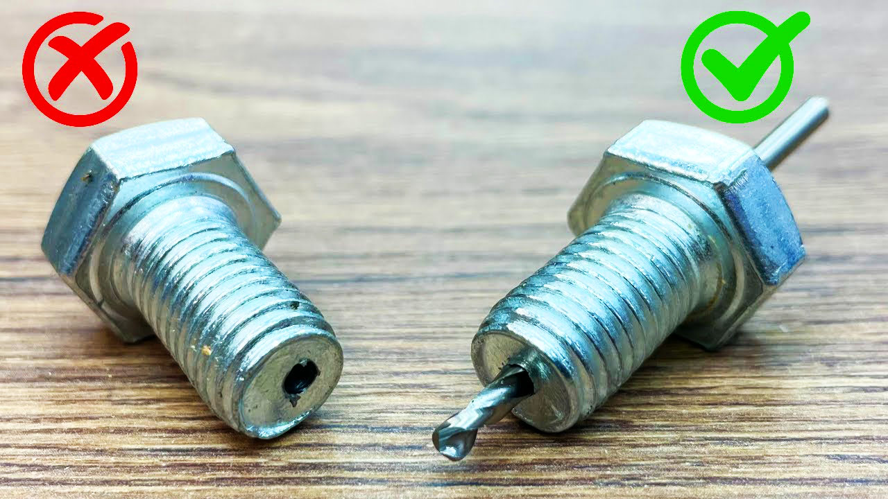 Иногда в ходе ремонта или творчества нужно просверлить отверстие в болте строго по центру — например, для создания подвеса, соединения деталей или изготовления нестандартного крепежа. При помощи этого способа можно просверлить отверстие в крупном болте максимально ровно, без зажима его в патроне дрели и без применения токарного станка.
