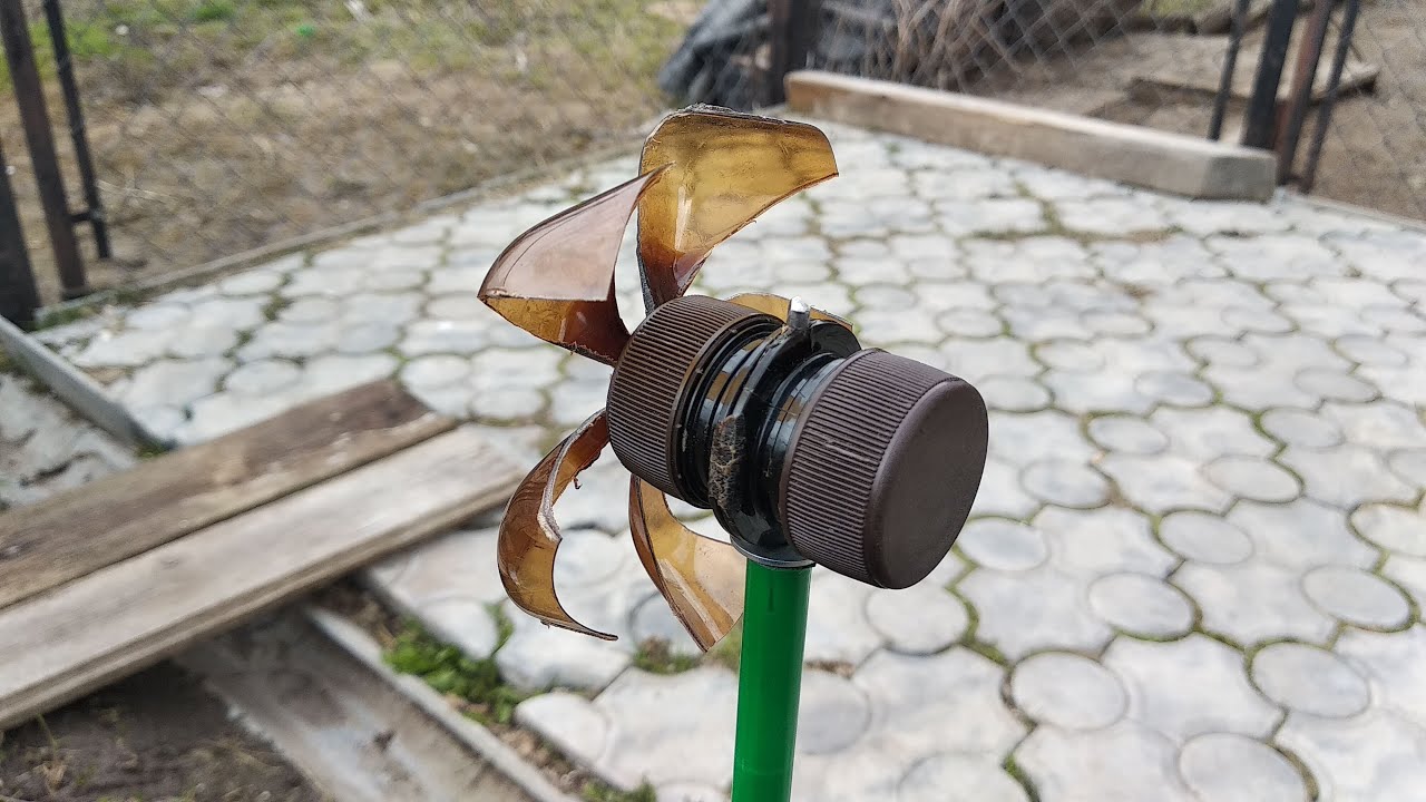 Я придумал простой ветряной отпугиватель — он работает от ветра, почти не шумит и стоит совсем недорого. Расскажу, как его сделать.