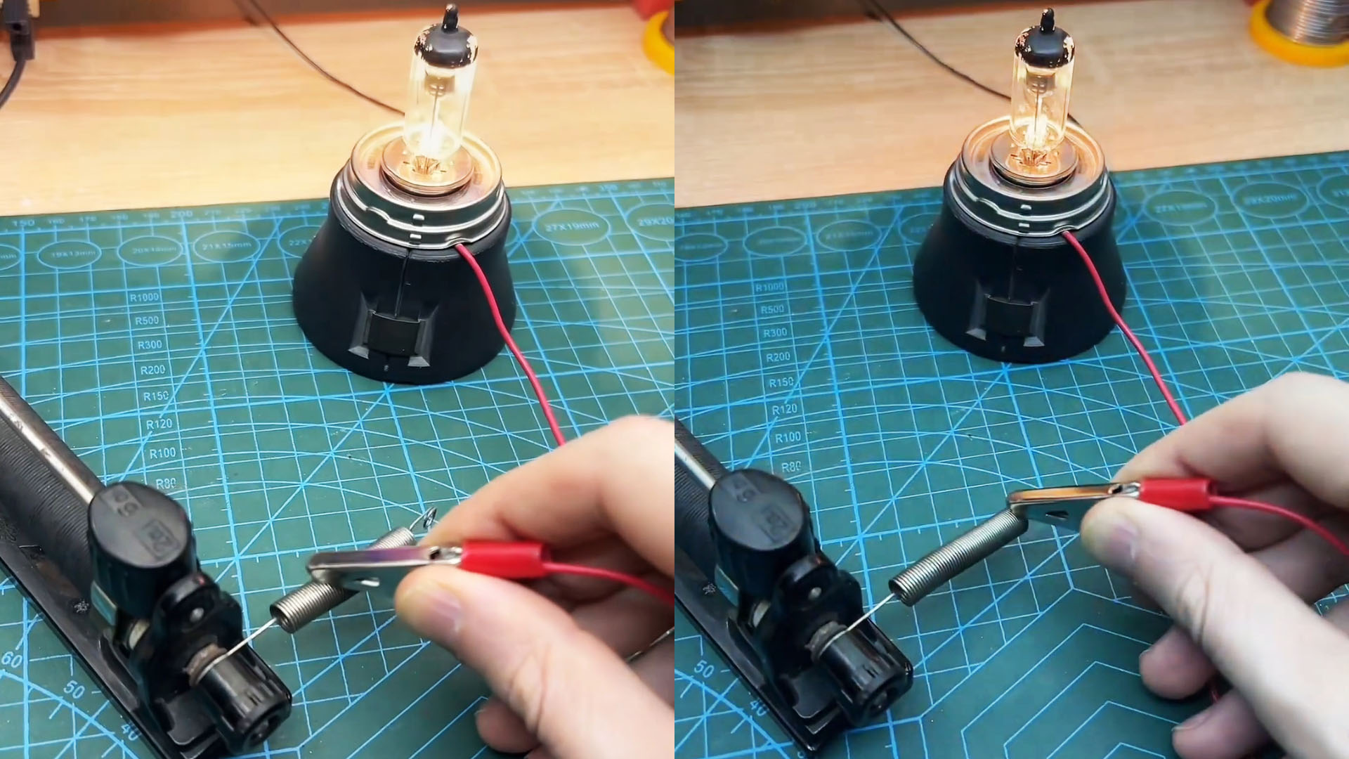 Приступаем к эксперименту. Зажимаем пружину в клемме, а второй контакт перемещаем по всей длине. Происходит очень плавная регулировка яркости лампы.