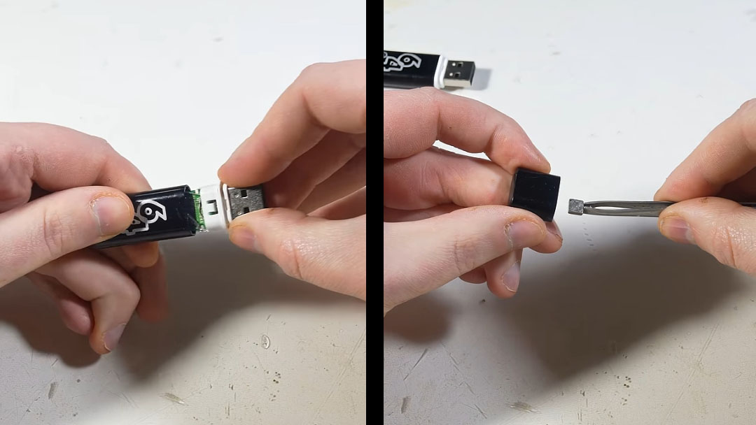 Затем собрал флешку обратно, прикрепил неодимовый магнит к колпачку и протестировал её.
