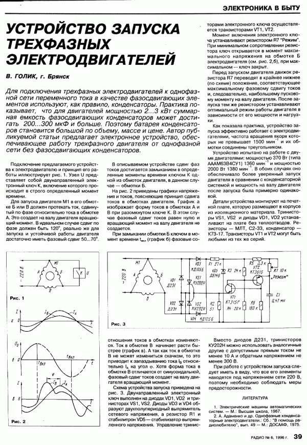 Запуск трехфазного двигателя от однофазной сети без конденсатора