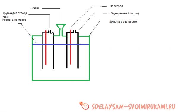 Интересная установка, но крайне опасная так как на гора получаем смесь газов. Я делал по другому электролизер возможно чуть менее эфективен в плане производительности, но куда более безопасен и проще в изготовлении. И самое главное на выходе получалось в разных трубках разделенные газы. Принцип изготовления простой: 2 одноразовых шприца больших 25 кубиков если не ошибаюсь, 2 графитовых стержня от больших батереек, полулитровая стекляная банка с крышкой, трубки, провода, источник питания и эпоксидка для герметизации.